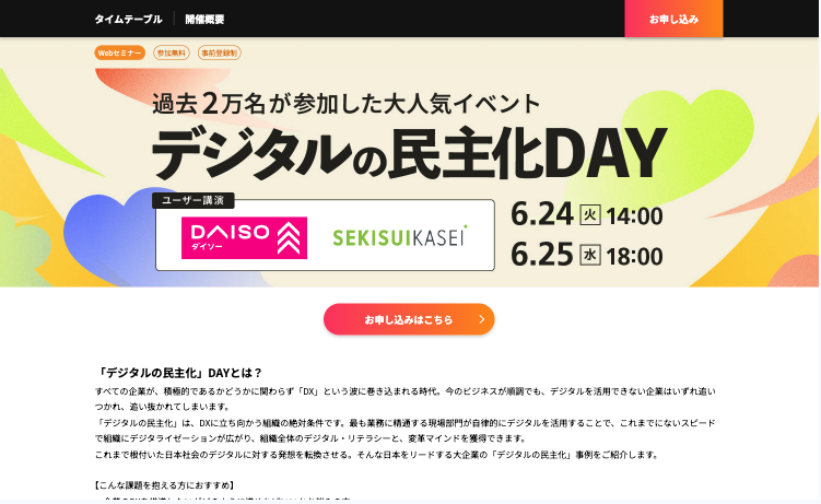 100万を超えるビジネスパーソンが会員登録するビジネス+IT。同サイト主催セミナー・同サイトクライアント主催セミナーの集客用LPのテンプレートを制作しました。