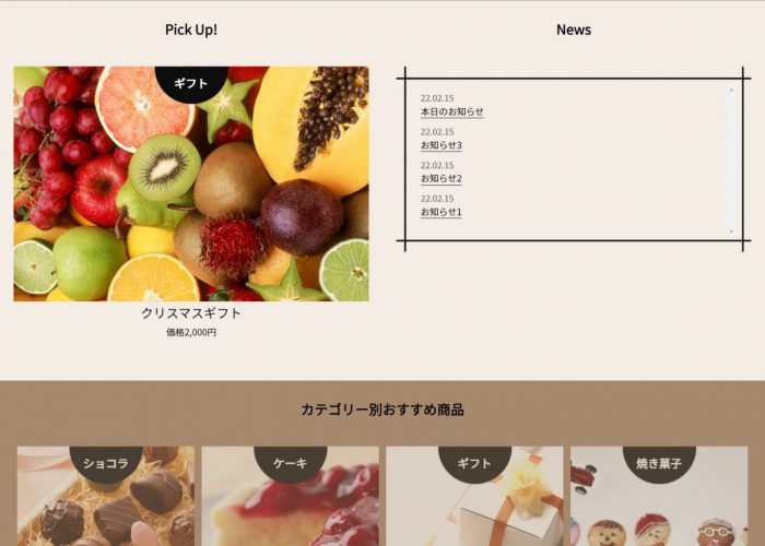 オリジナルのWordPressテーマで架空のスウィーツ店のECサイトを創ってみました。