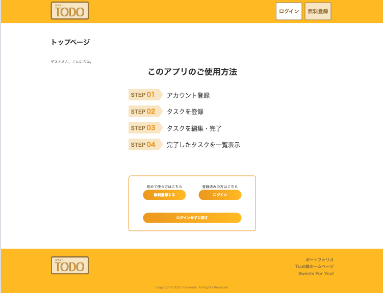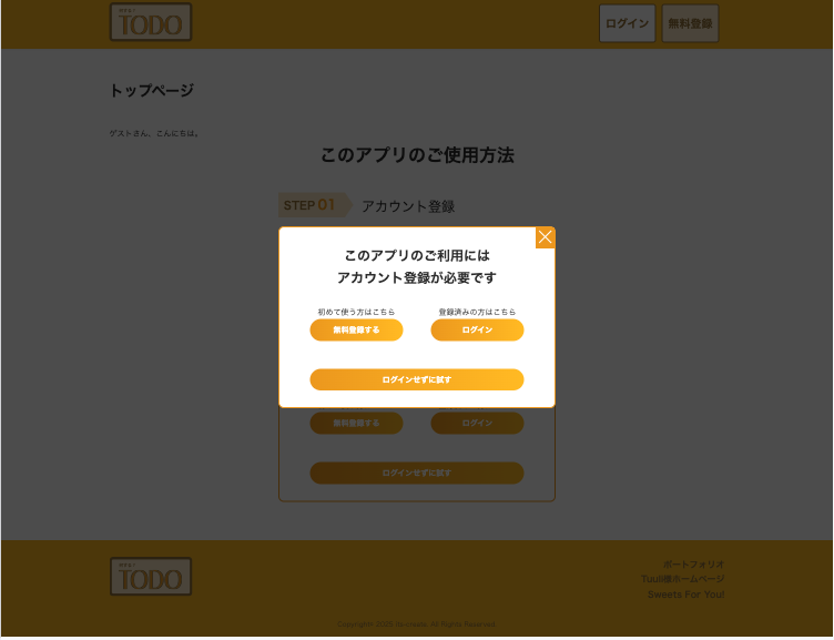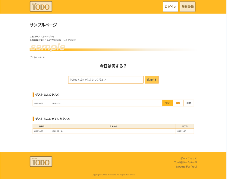 会員登録しなくても試せるようにゲストユーザーが使用できるサンプル機能を設置しました。